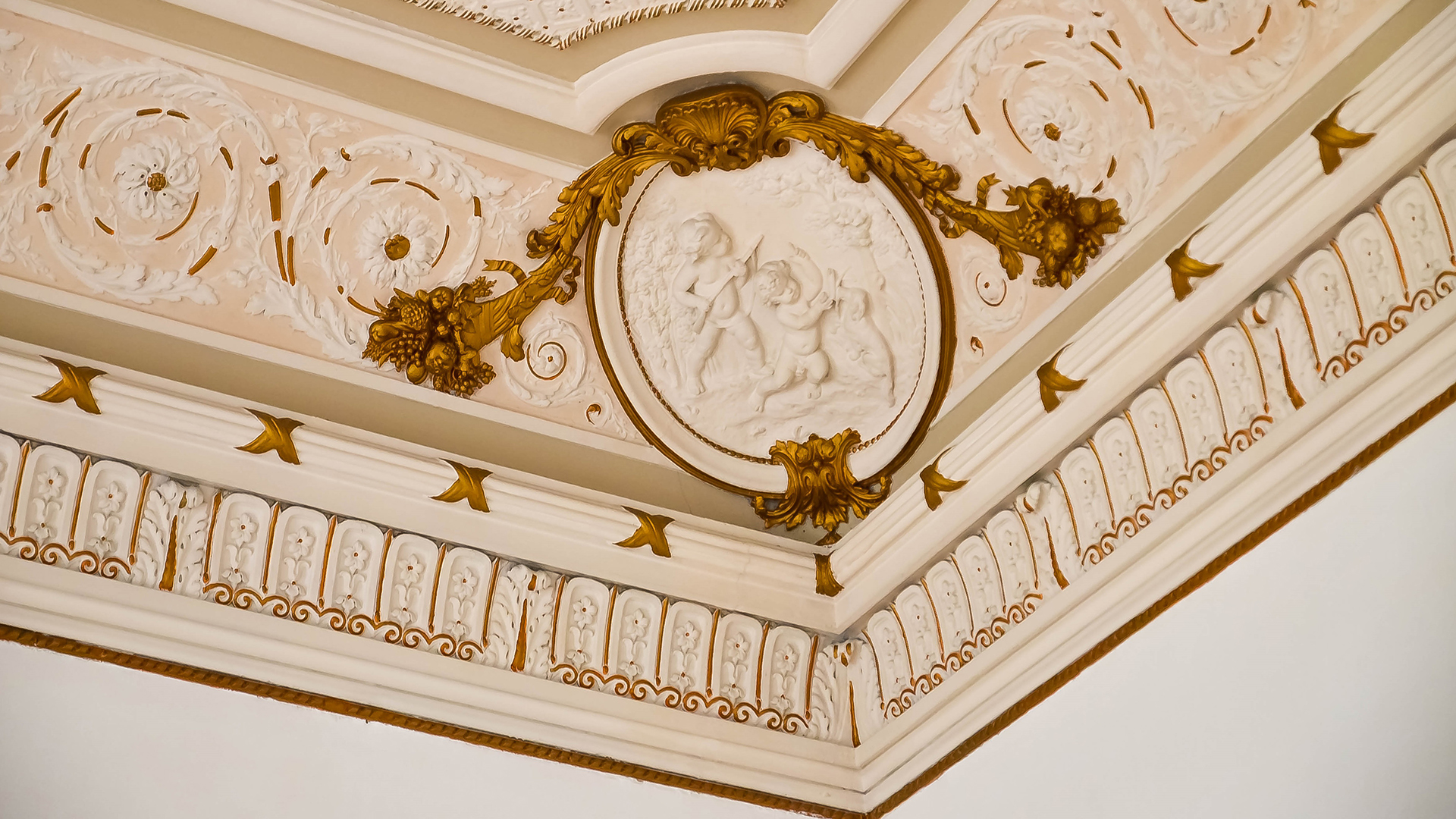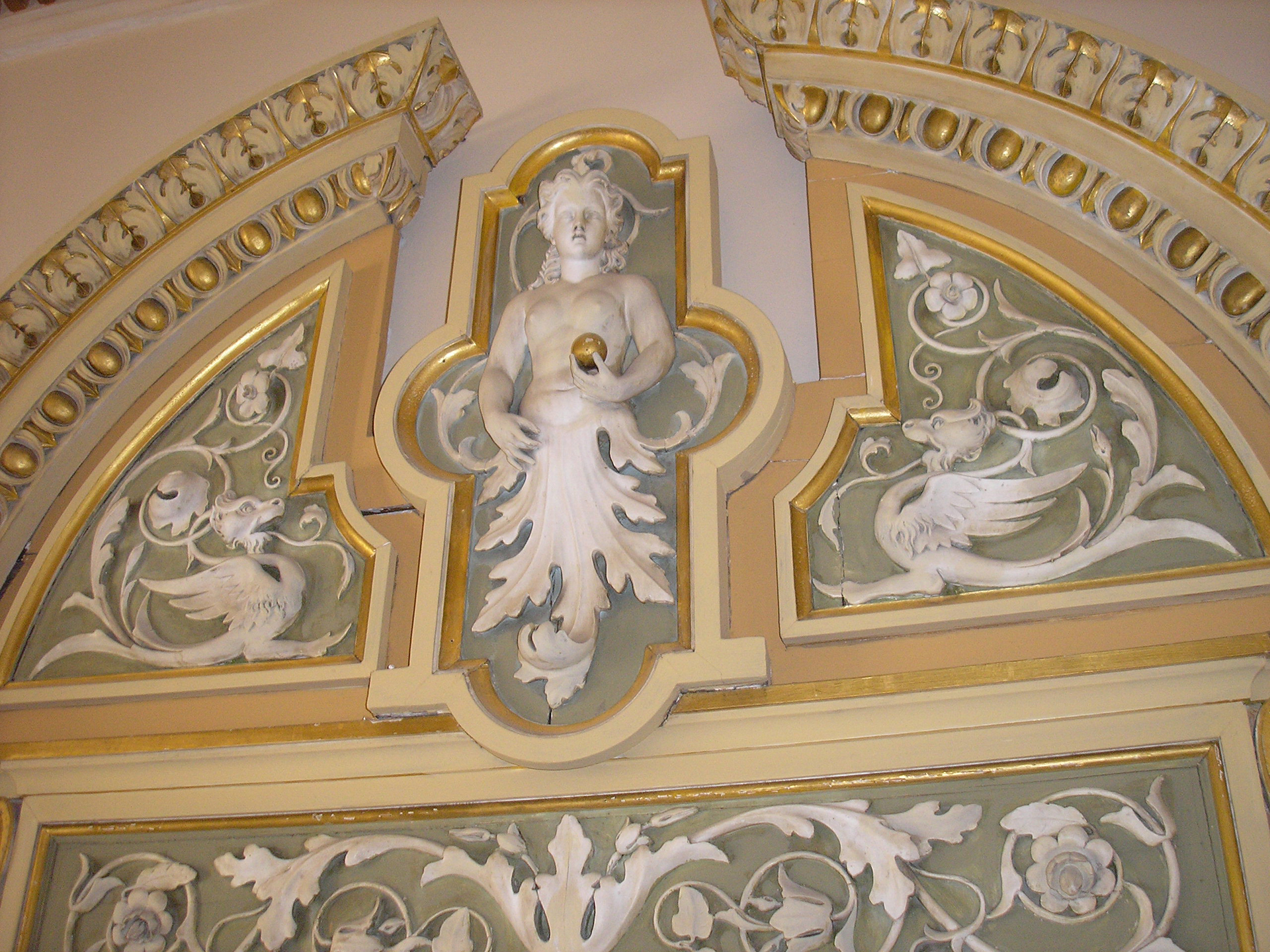 Gli stucchi Le decorazioni a stucco, in gran parte eseguite da una ditta parigina, impreziosiscono i soffitti delle sale del piano nobile (1° piano). Festoni, volute, riquadri e medaglioni con figure di putti, formano un insieme stilistico ricercato ed eclettico.